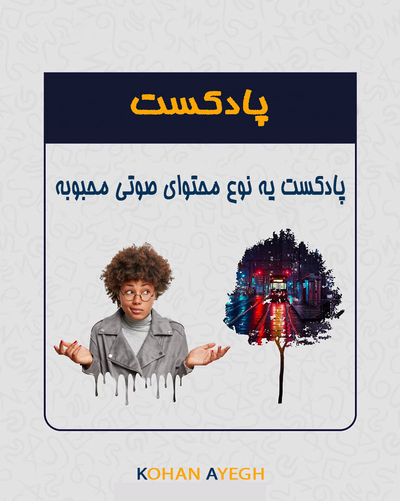- در تعریف ، پادکست به مجموعهای از فایلهای صوتی میگویند که برای دانلود یا گوش کردن آنلاین مورد استفاده قرار میگیرند. در حقیقت، پادکستها مانند برنامههای رادیویی هستند با این تفاوت که میتوان به صورت آنلاین و در هر زمان و مکان به آنها گوش داد.